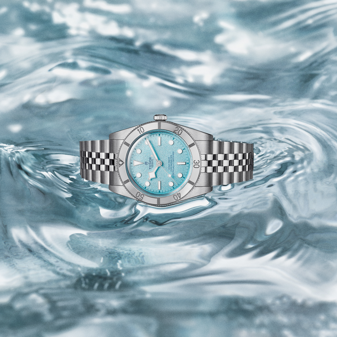 Wearing the TUDOR Black Bay 54 “Lagoon Blue” transports you to a warm, sunny beach with gentle waves and white sand. The new Black Bay 54 features a perfectly sized 37mm case, polished bezel and a sand-textured dial inspired by paradise—making it perfect for relaxed, sunset-filled seasons.