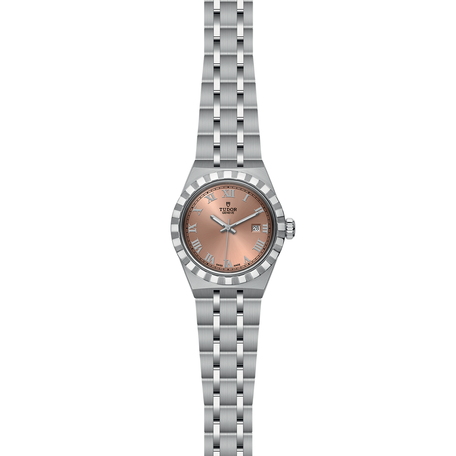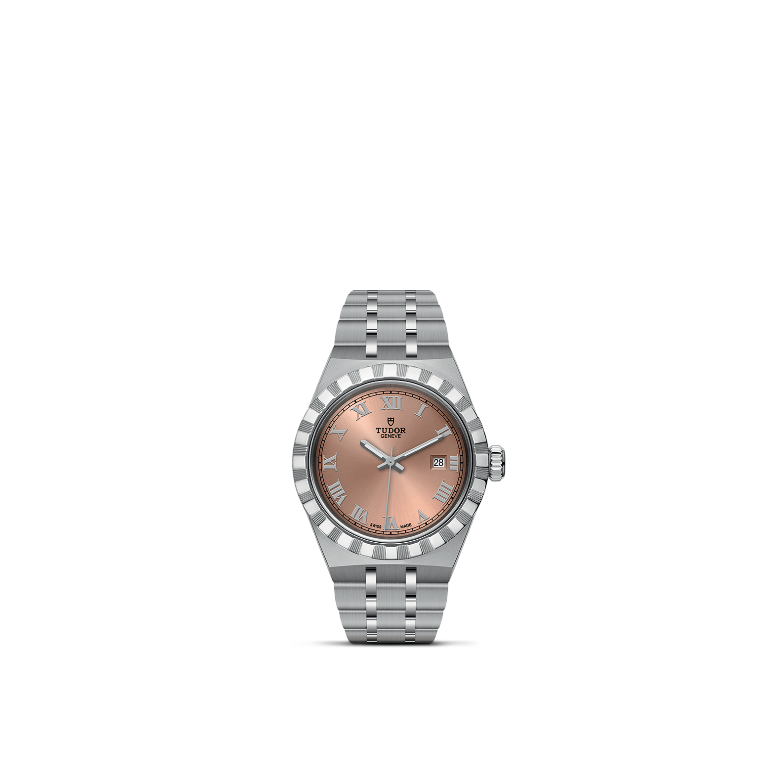 The Tudor Royal range is the epitome of balance between elegance and sportiness. The details of its design give it a unique personality, especially from its characteristic notched bezel with alternating surface polish and cut grooves. The integrated metal bracelet ensures an uninterrupted flow, starting from the case.