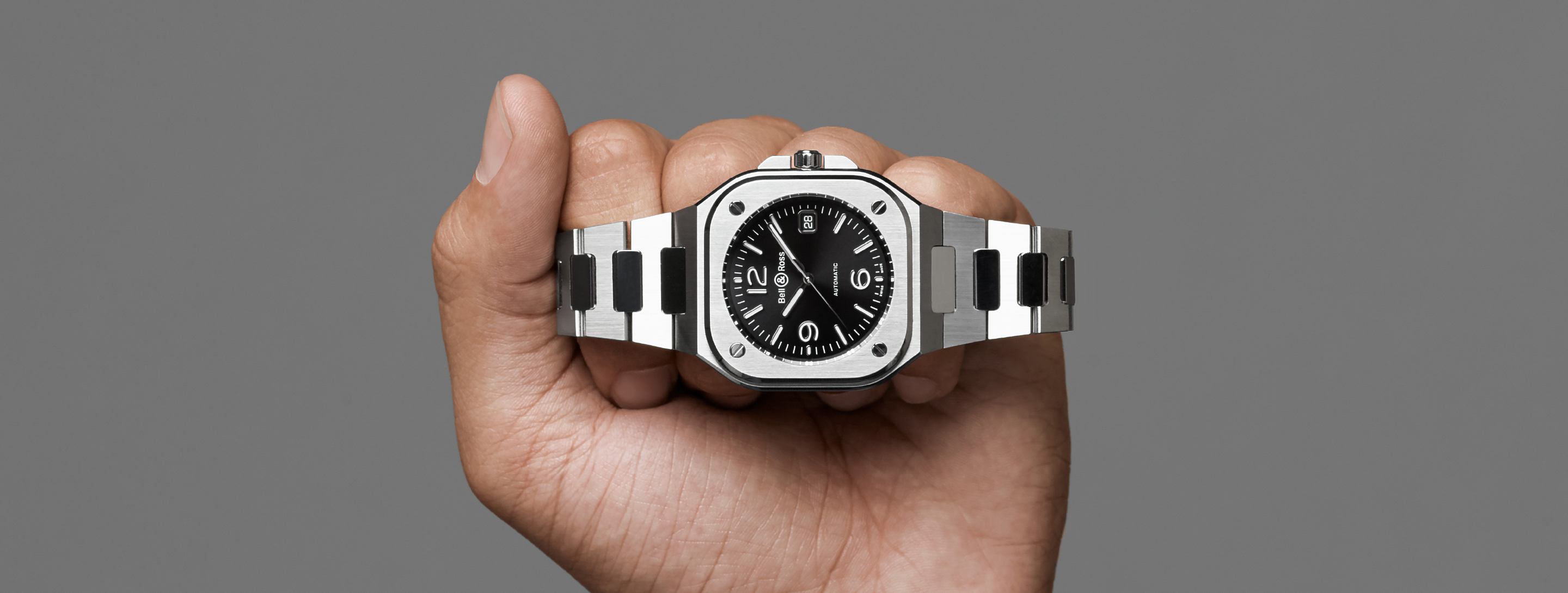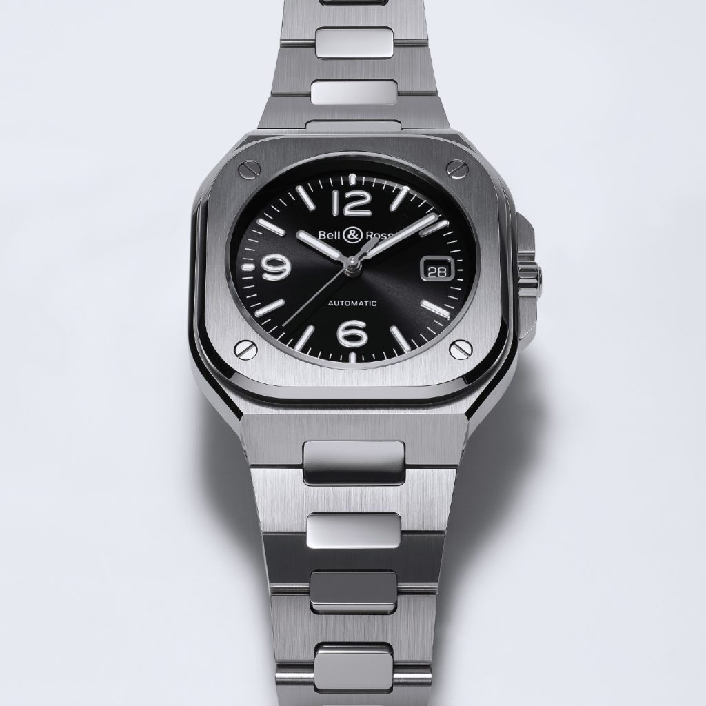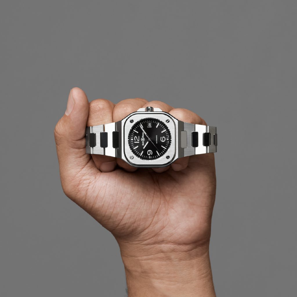 The integrated design of the BR-05 reveals its distinctive character. As Bruno Belamich, Creative Director and co-founder of Bell & Ross, explains: “This integration of case and bracelet is not only in line with the brand’s visual identity, it also brings another dimension to the watch: the first link forms part of the case. This type of design harks back to the seventies, and when transposed to Bell & Ross, the resulting graphic style is both striking and modern.”