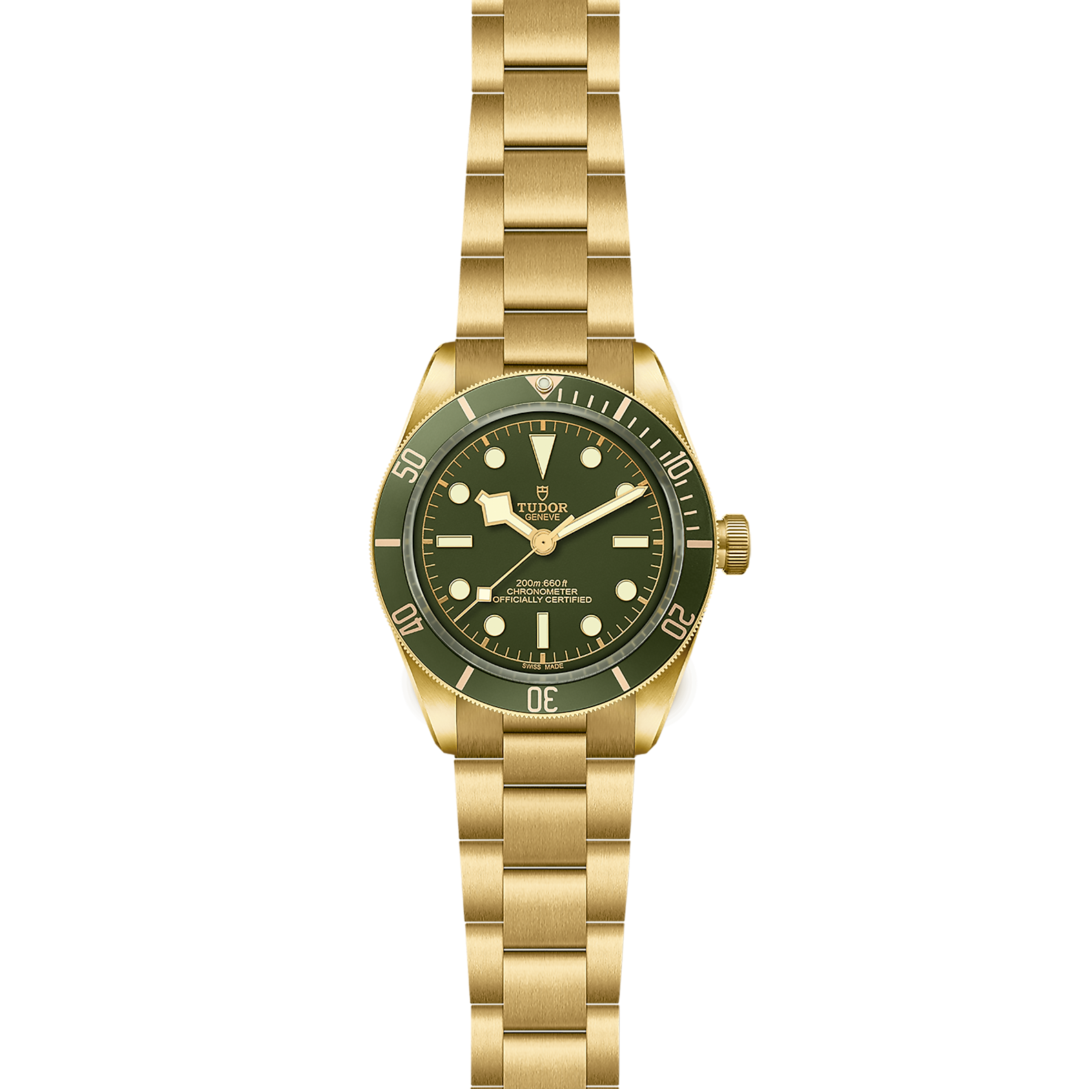 Midway between the legacy of a robust tool-watch that still defines TUDOR and a precious object, the Black Bay 58 18K remains as rare as it is exclusive. The matt 18 ct yellow gold of the Black Bay 58 18K is emphasised by the combination of dial and bezel, which are a rich “golden green” in tone with matt gold details. The “Snowflake” hands are also in 18 ct yellow gold, as are the applied hour markers.
