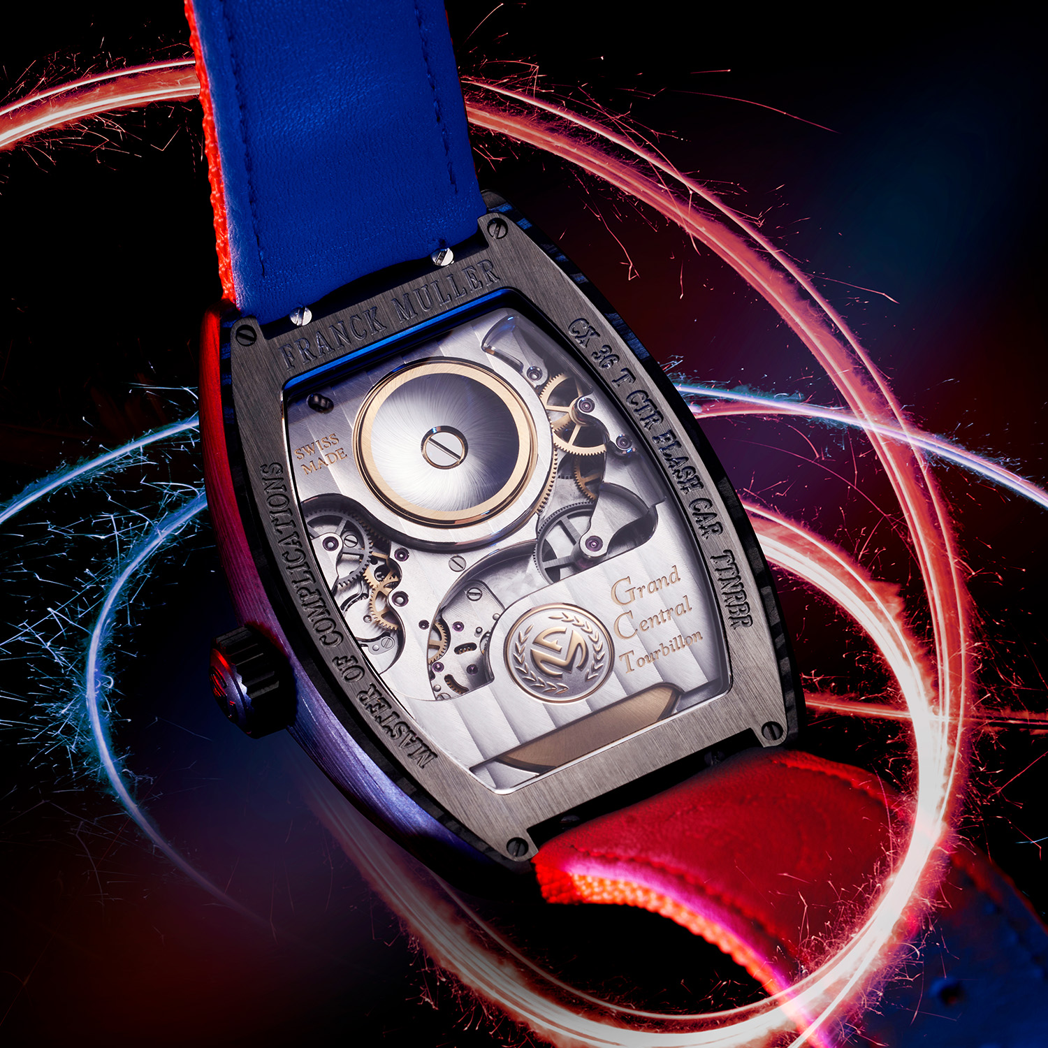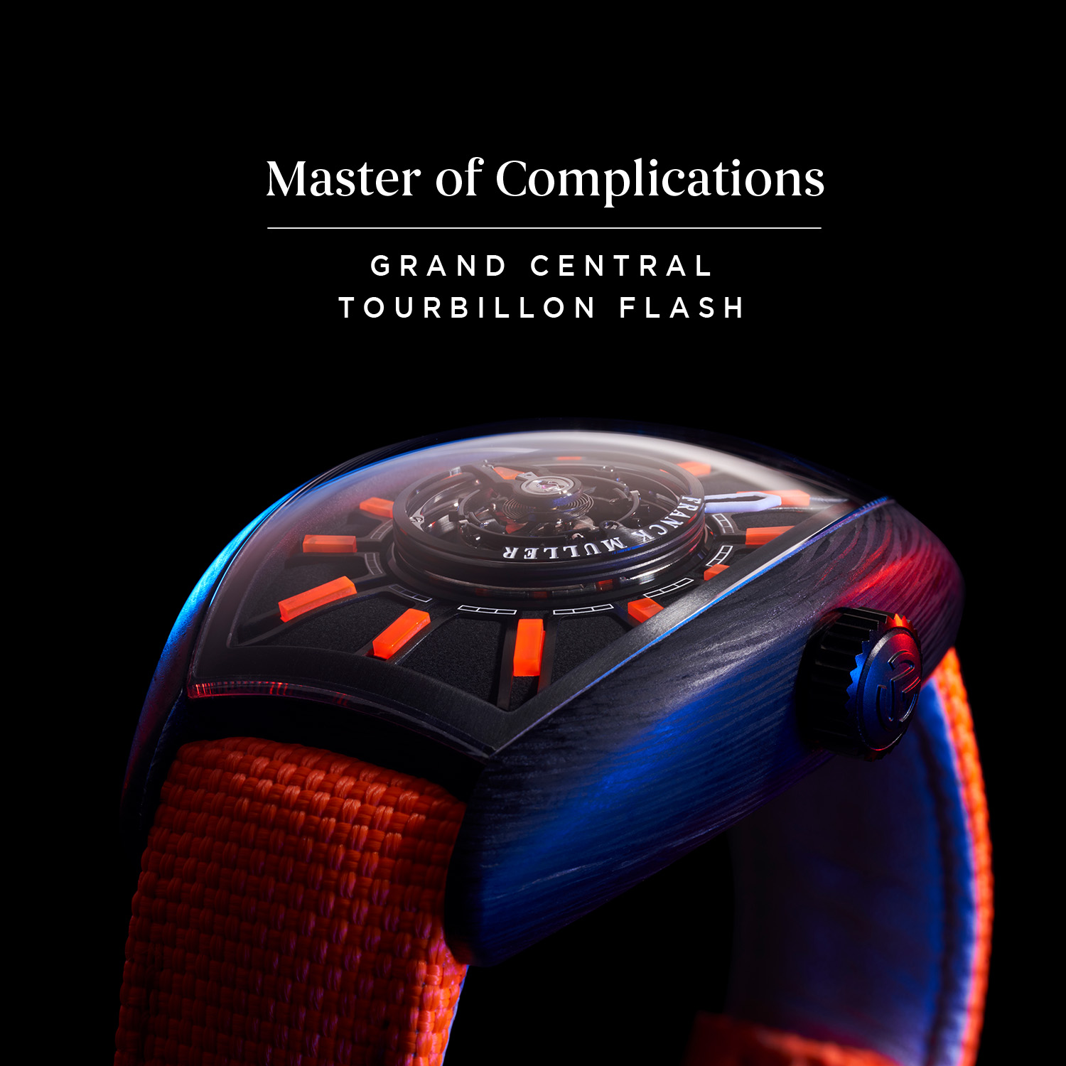 Standing out like a futuristic starship in space, the Grand Central Tourbillon Flash features a redesigned dial, on which the House’s distinctive numerals are replaced by bright, vibrantly coloured indices on a microblasted black matte dial, all pointing toward the centre of the timepiece, highlighting the mesmerising mechanics of the tourbillon. The tourbillon’s cage bridge also incorporates a striking neon arrow, rotating around the nucleus like an electron, enabling the seconds to be read.